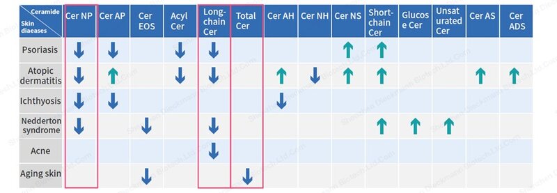 Nelle classiche problematiche infiammatorie come ad esempio acne, psoriasi, dermatite atopica e invecchiamento della pelle si osserva una riduzione delle ceramidi a lunga catena.