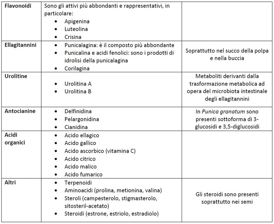 Punica granatum L. è uno straordinario esempio delle potenzialità del mondo naturale nel creare ricchezza in contenuto di sostanze bioattive. Come ci dimostrano i numerosi dati presenti in letteratura, possiamo infatti riscontrare (8, 9, 12, 13, 14, 15):