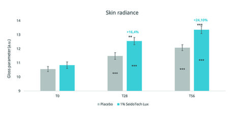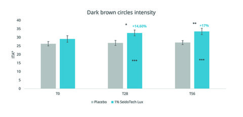 ROELMI HPC ha sviluppato SeidoTech® Lux, un nuovo attivo cosmetico biotecnologico progettato per la cura del contorno occhi. Il meccanismo d’azione si fonda su 4 punti cardine: la modulazione dell’iperpigmentazione cutanea, l’aumento della microcircolazione dell’area perioculare, l’inibizione della glicazione e la neutralizzazione dei ROS. L’ingrediente proviene dalla fermentazione batterica controllata (soggetta a patent) di foglie di Vitis vinifera L. mediterranea e ceppi probiotici selezionati. SeidoTech® Lux è in grado di fornire un’efficacia testata (percentuale d’uso: 1%) con risultati visibili e duraturi come hanno dimostrato i test in vitro, in vivo e il nuovo studio clinico appena pubblicato.