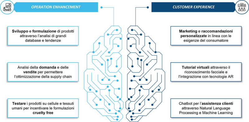 Figura 1. Principali applicazioni dell’AI in ambito cosmetico (Strategic Management Partners).