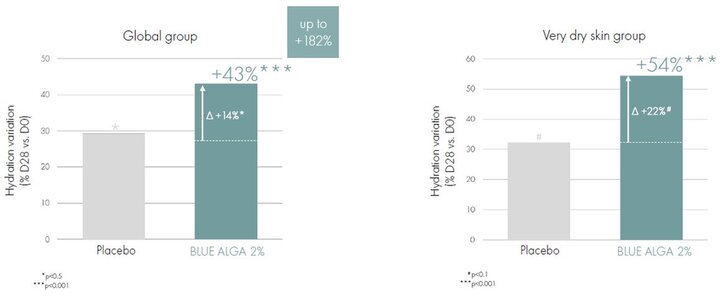 BLUE ALGA aumenta l'idratazione della pelle, soprattutto quella molto secca.