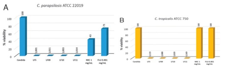 In particolare, i risultati hanno dimostrato l’efficacia inibitoria di L. fermentum LF10 nei confronti di cinque diverse specie di Candida: C. parapsilosis, C. albicans, C. tropicalis, C.krusei, C. glabrata. Nello stesso studio è stata comparata l’azione del ceppo probiotico con quella di azoli largamente utilizzati nel trattamento farmacologico come miconazolo e fluconazolo.