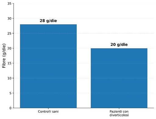 Figura 4. Confronto nell'assunzione di fibre tra controlli sani e pazienti con diverticolosi.
